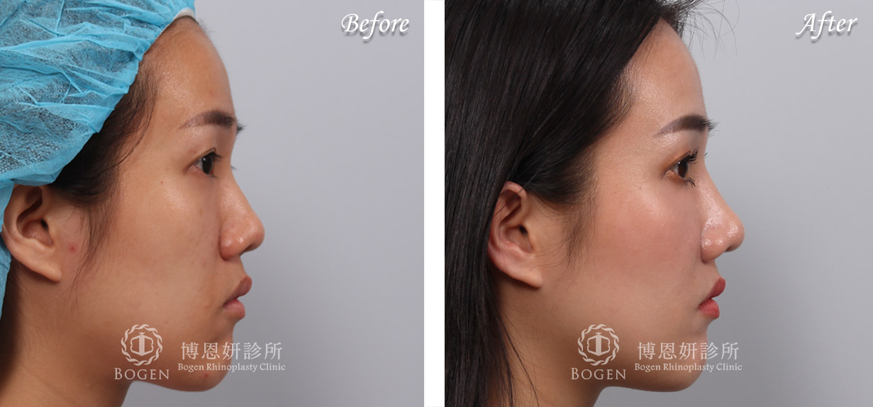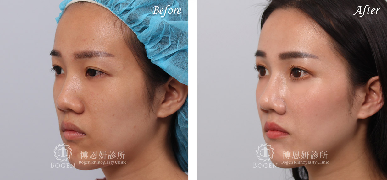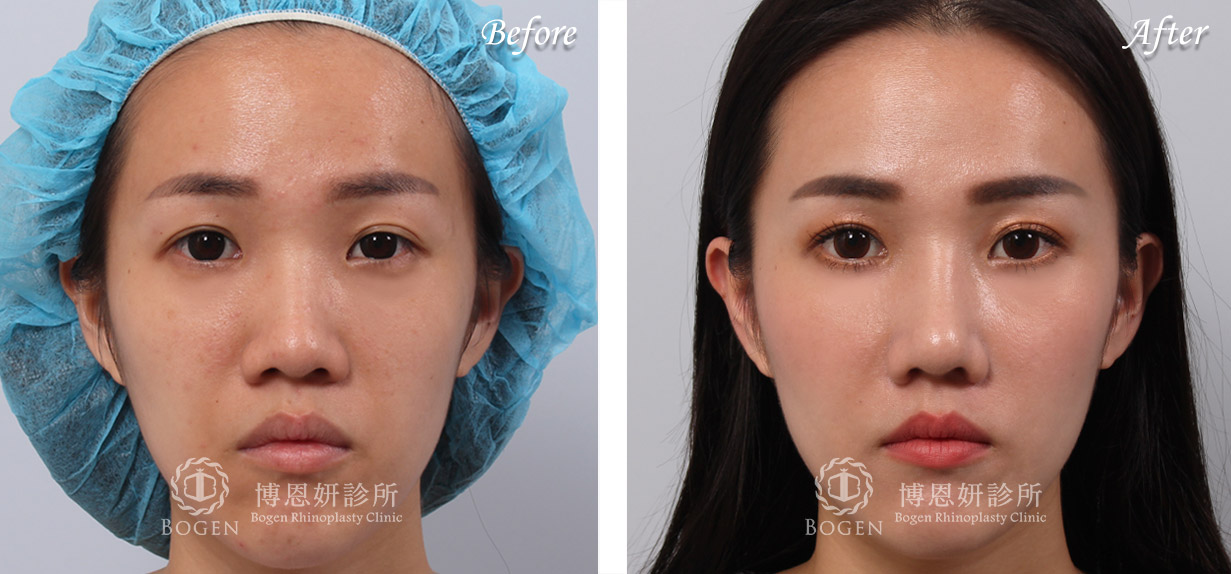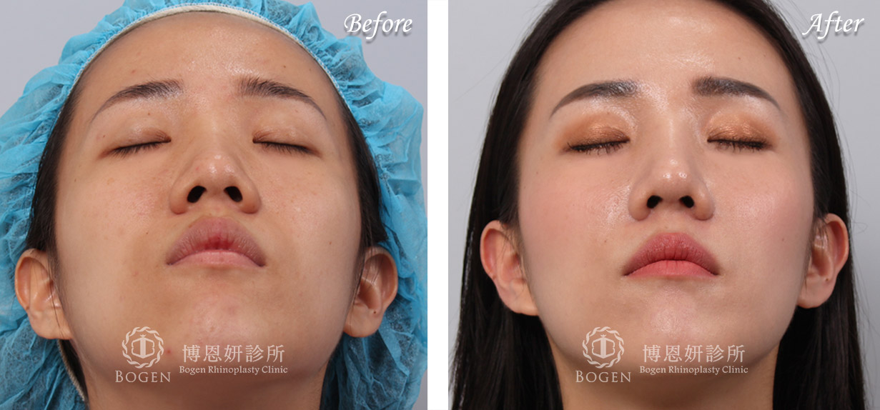 利用3D電腦斷層評估鼻中隔大小,稍微增加鼻頭高度,利用Locking technique延長鼻頭與鼻小柱。鼻翼手術與鼻翼下垂拉提術改善鼻翼寬大與下垂問題。最終搭配貴族手術改善中臉凹陷提升整體立體感。