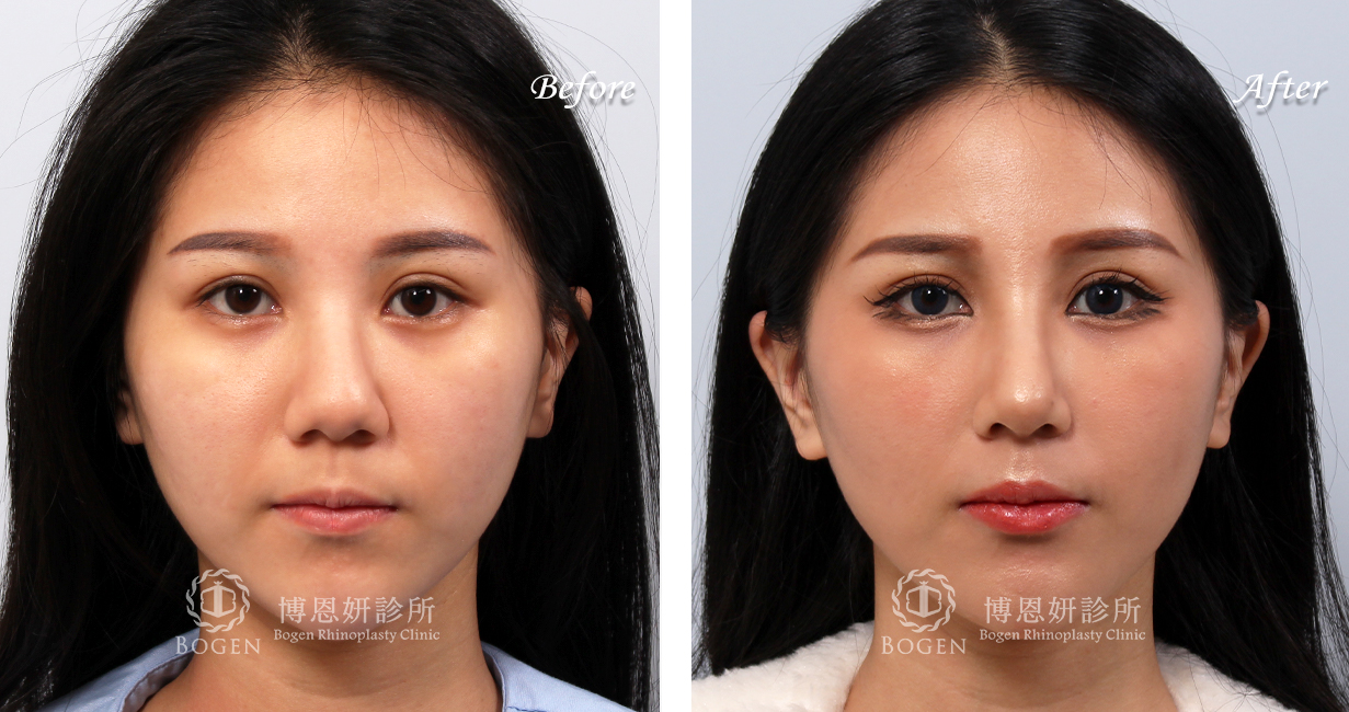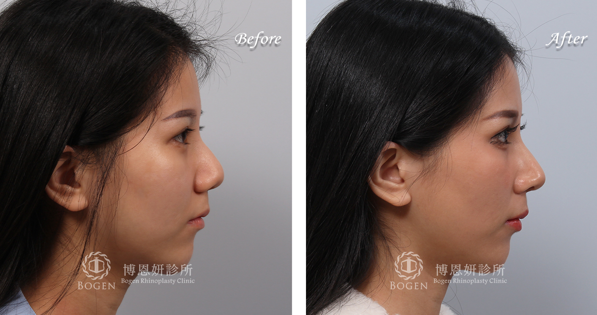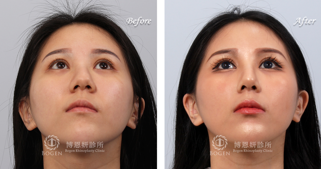 藉由電腦斷層定位鼻中膈彎曲部分,精密調整,再藉由自肋縮小鼻頭,最終鼻翼上提達成整體精緻效果。