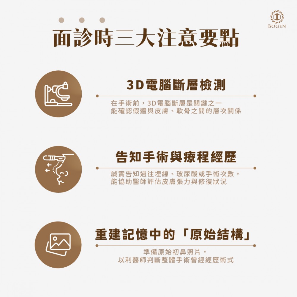 因此,針對在意鼻樑平順度的求美者,我們建議面診時: