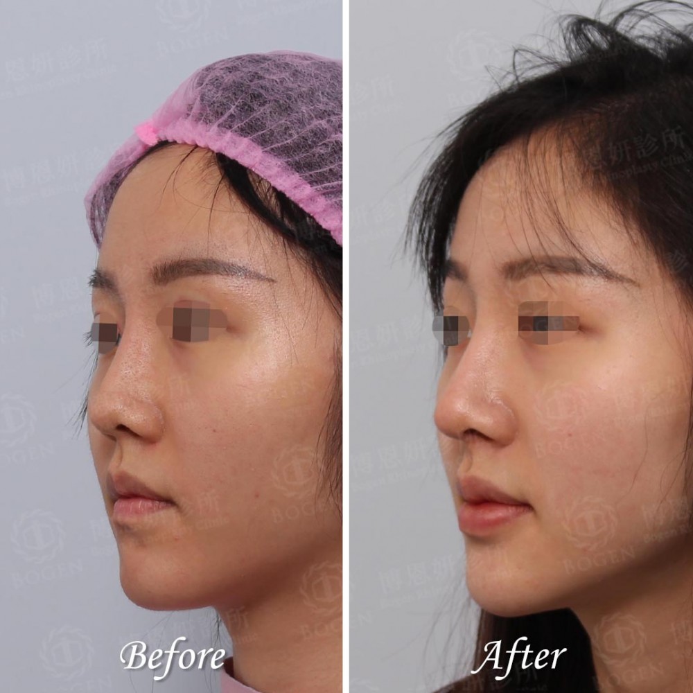 3. 隆鼻手術:由專業隆鼻醫師依據個人鼻骨高度、皮膚厚度、五官比例,使用隆鼻假體及自體軟組織,從眉心、鼻樑到鼻頭打造立體線條。