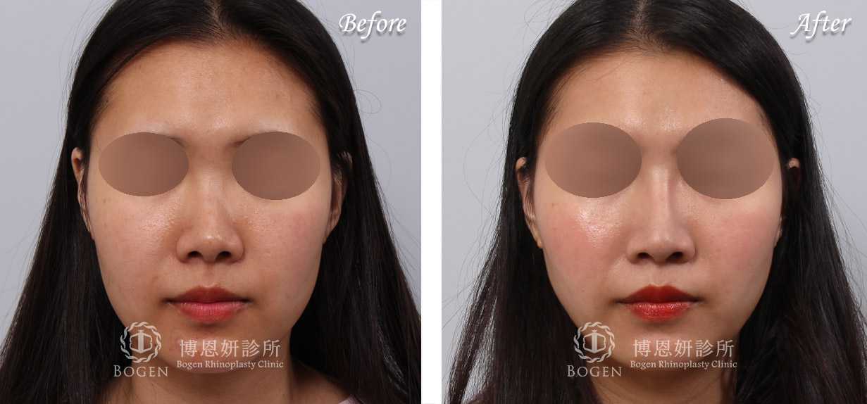 模特兒與主持人身份的菁菁,五官其實十分精緻,唯獨朝天塌鼻與下巴讓她十分困擾。如果能改善鼻孔問題同時增加鼻樑挺度,會讓她外觀上更為加分,同時也能拓展事業版圖更上層樓