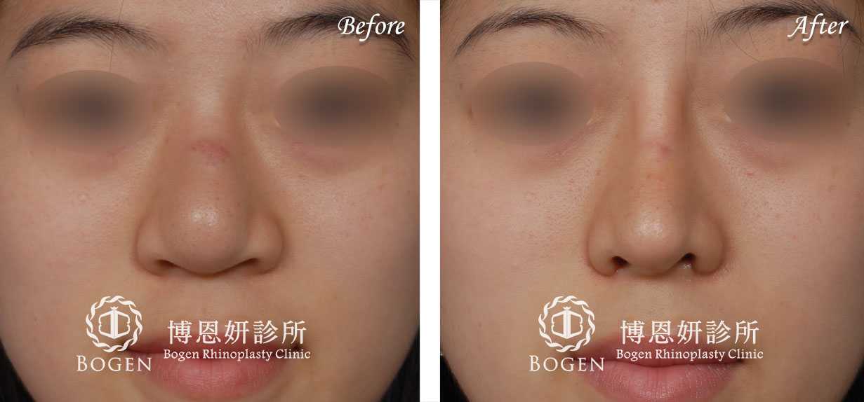 具有組織附著性的材料如晶亮瓷,經多次注射後,臨床上會有出現硬塊或吸收較差的案例,如果需要整層組織移除,需交由專業鼻整形醫師評估。組織移除後宜用自體真皮脂肪片或異體筋膜補充軟組織不足,如果鼻樑高度需要增高較多患者可能還需搭配其他人工材料增高,鼻頭一樣使用全自體軟骨架構。移除植入劑,是個膽大心細,需要鼻重修經驗豐富的手術醫師來執行。若為增加臉部精緻度可再搭配鼻翼手術同時進行。