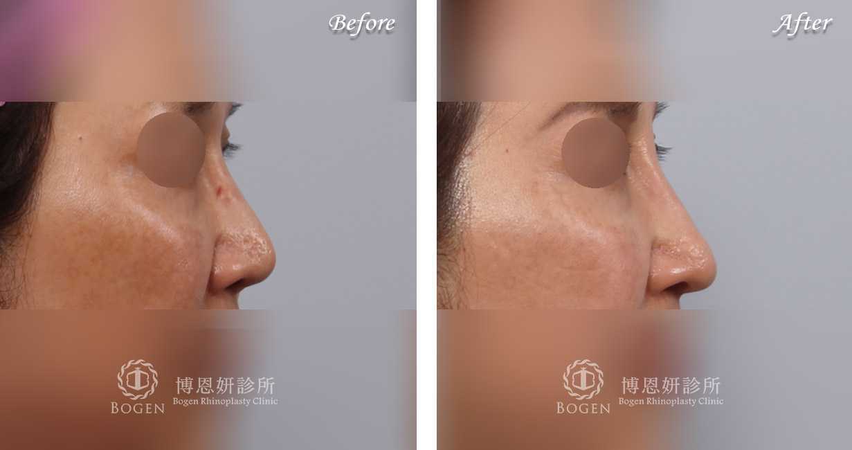 異體真皮,具有最高人體相容性,經過多層次無菌與減敏處理,可以作為患者鼻樑與法令填充增高材料。感染率低,觸感柔軟,深受追求自然與安全型態的患者喜愛。張簡醫師承襲韓國鼻雕工藝,從眉心至鼻頭,都能盡其所能雕刻出患者所喜愛的鼻樑型態,異體真皮鼻樑手術,是博恩妍引以為傲的手術項目之一。