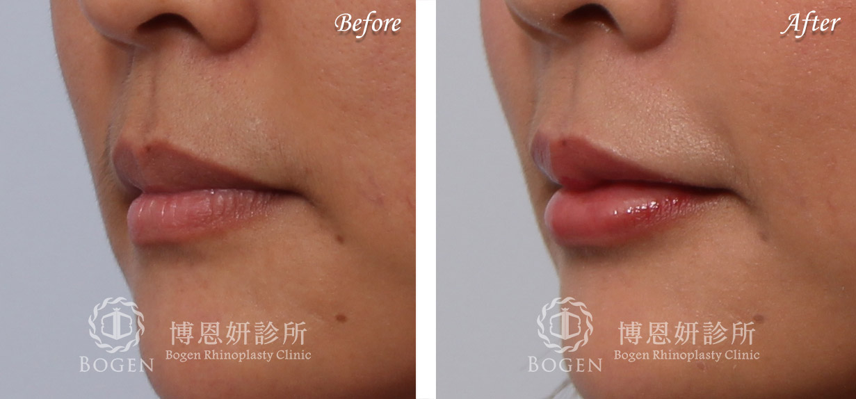本院微笑線切口於唇粘膜內側,一般術後疤痕比嘴角邊的疤痕較不明顯,方式為藉由增加上唇兩側立體感達到微笑唇的效果。唇珠手術則可藉由局部皮瓣增加唇珠厚度達到效果。唇峰手術則可根據患者需求增厚唇峰中段,或是唇峰兩側厚度(端看患者喜好與醫師討論結果)。一般恢復期為一至兩個月。