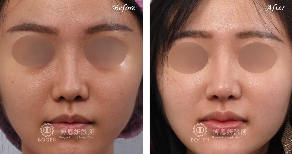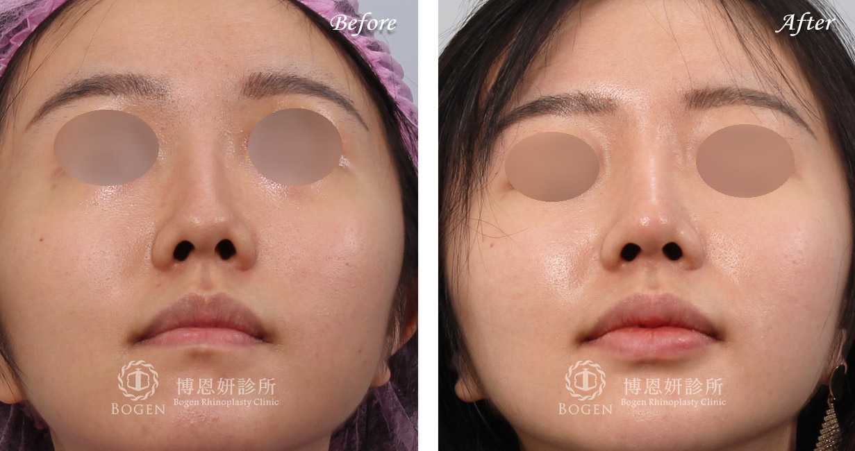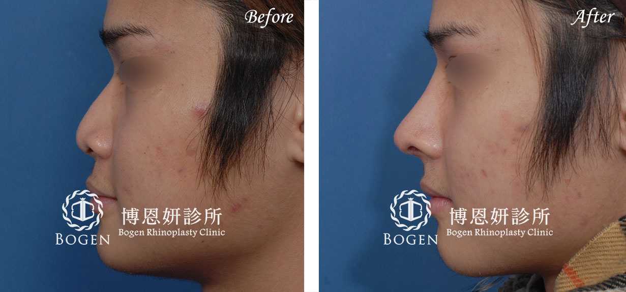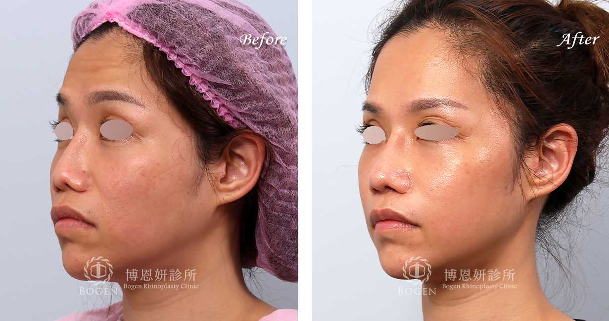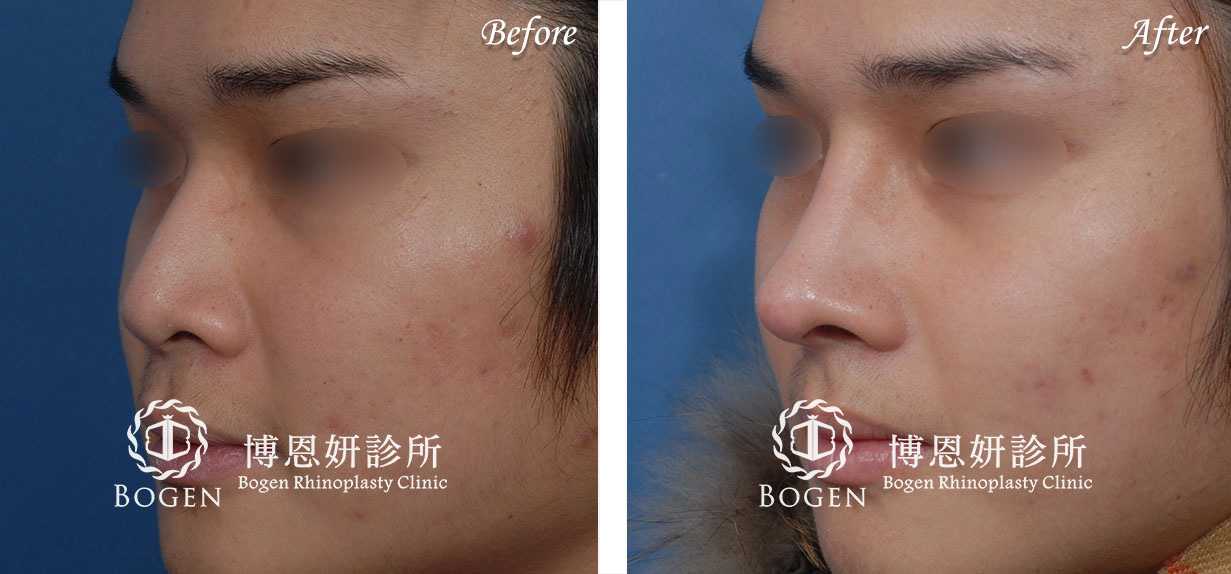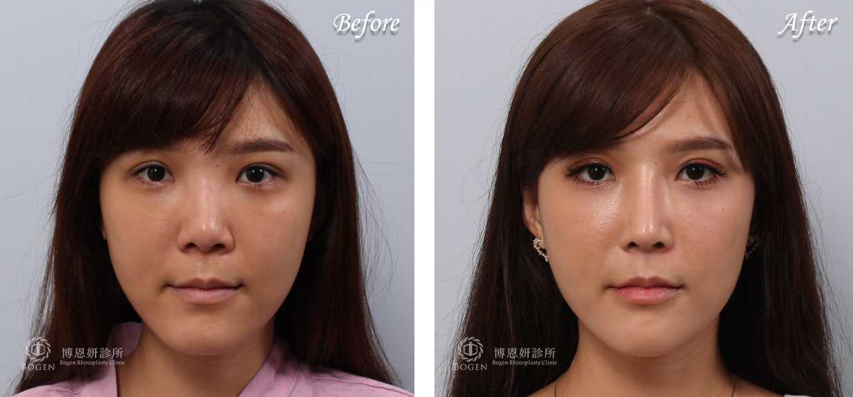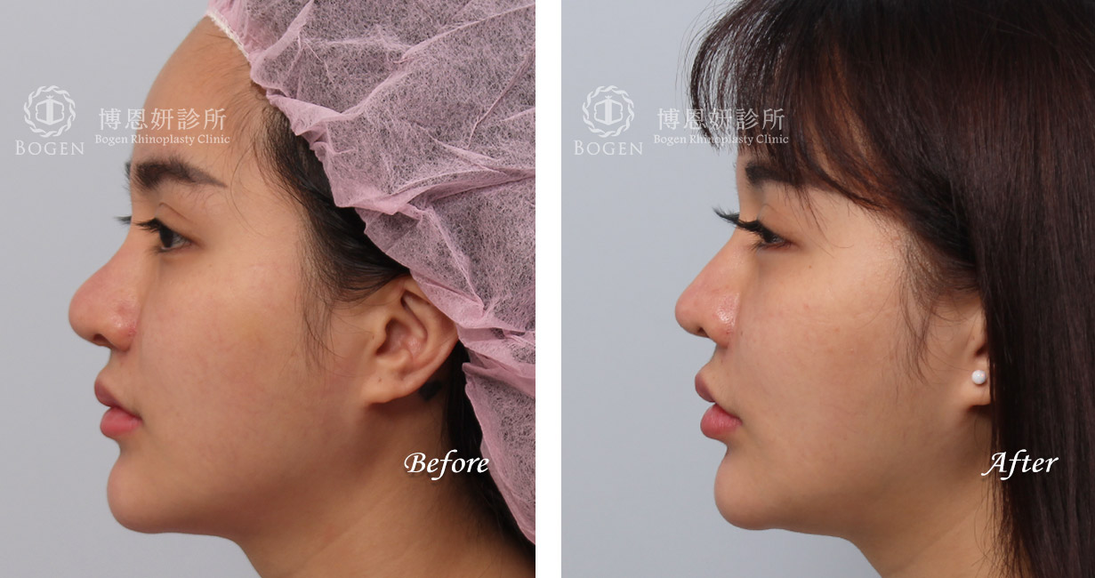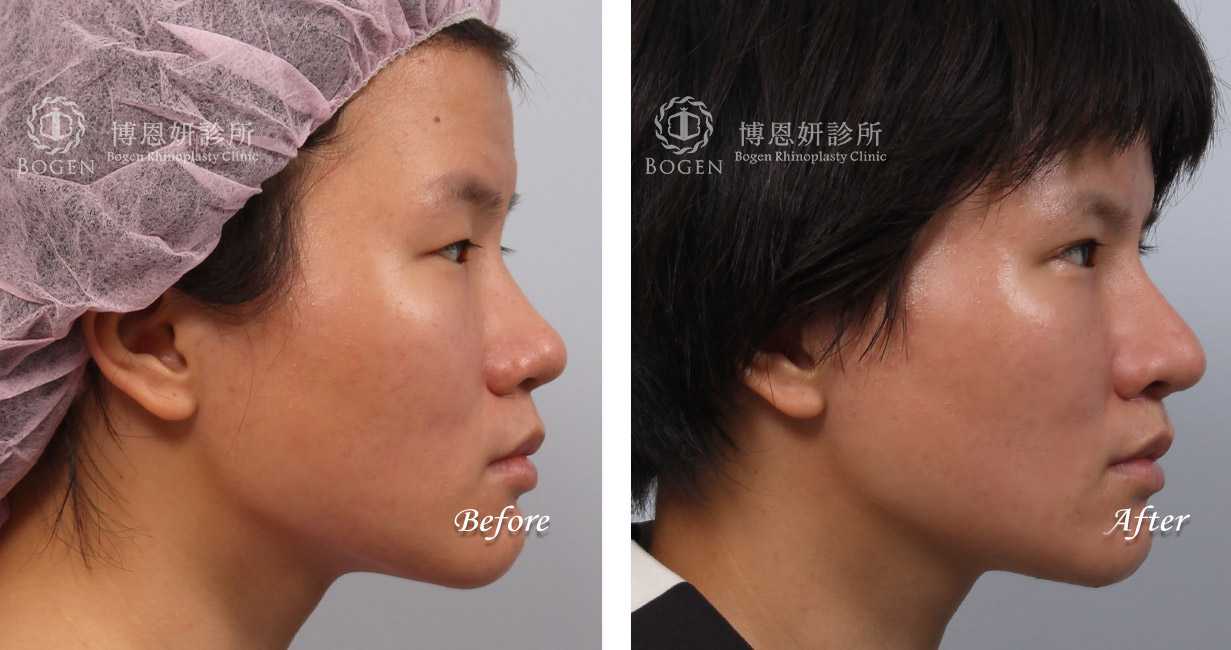 患者自肋隆鼻術後恢復良好,術後取肋傷口不會特別疼痛,一週拆線後即返回職場。術後5個月患者鼻型改善,延長墊高的鼻頭將鼻樑柔順弧度襯托出來。關鍵的鼻孔協調性部分經重修後也對稱許多,終於完成患者多年未盡的心願。