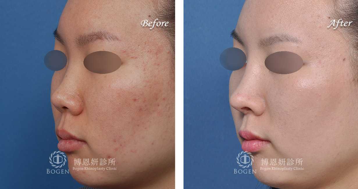 C小姐年輕時曾經接受過鼻中膈彎曲整形手術,後因生活習慣問題,希望尋求最安全的鼻整形方式。經過詳細的諮詢與商討,她選擇了全自體肋軟骨隆鼻,並搭配鼻翼手術來改善鼻部型態。術後4年多的追蹤顯示,其型態依然明亮動人。
