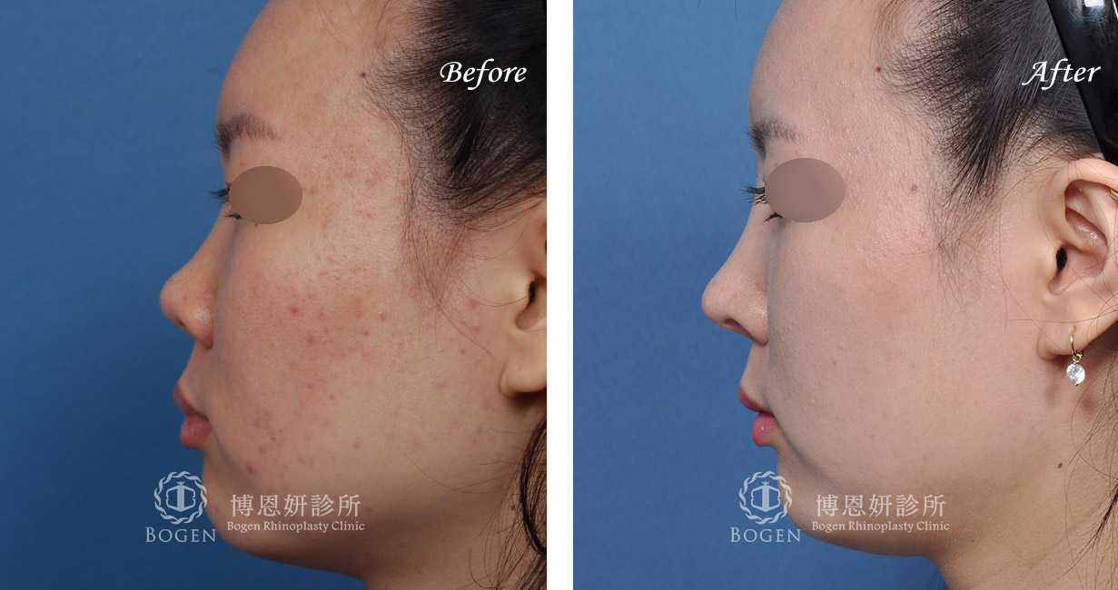 3. 自體或異體真皮(也可同時搭配片狀Goretex支撐鼻樑),改善軟組織缺少的鼻樑不平均。