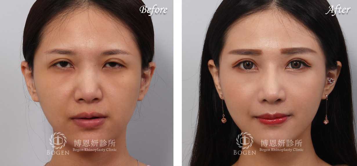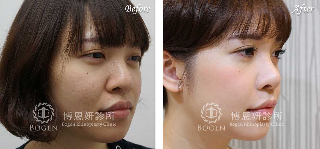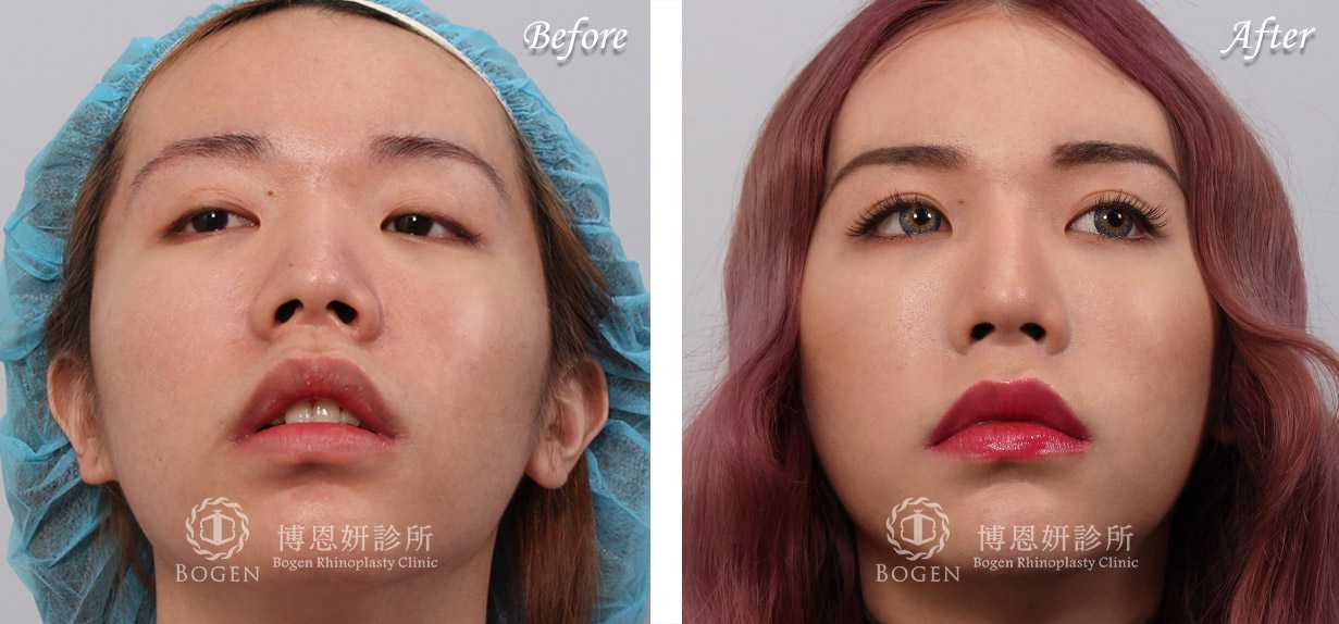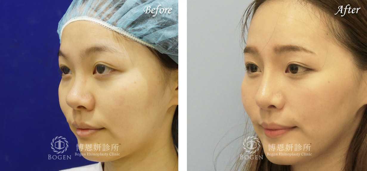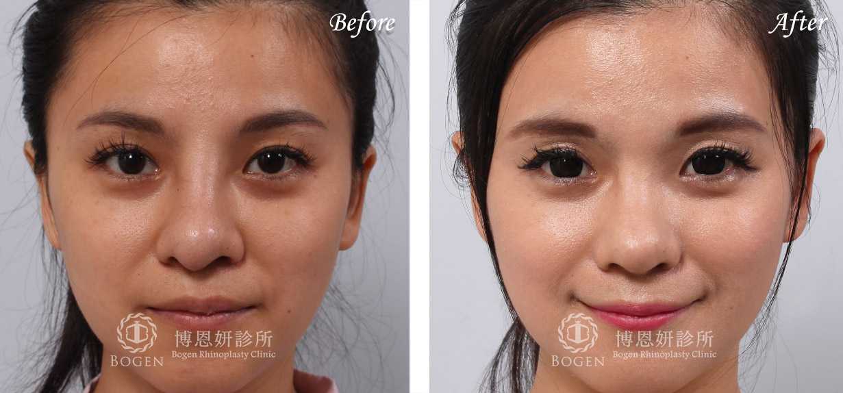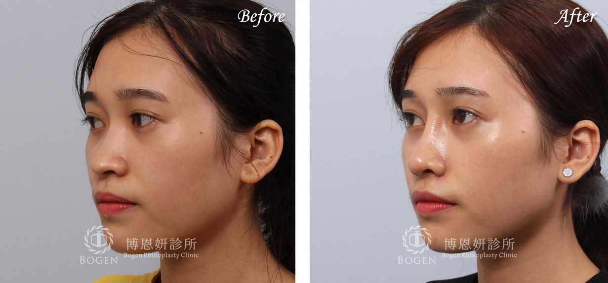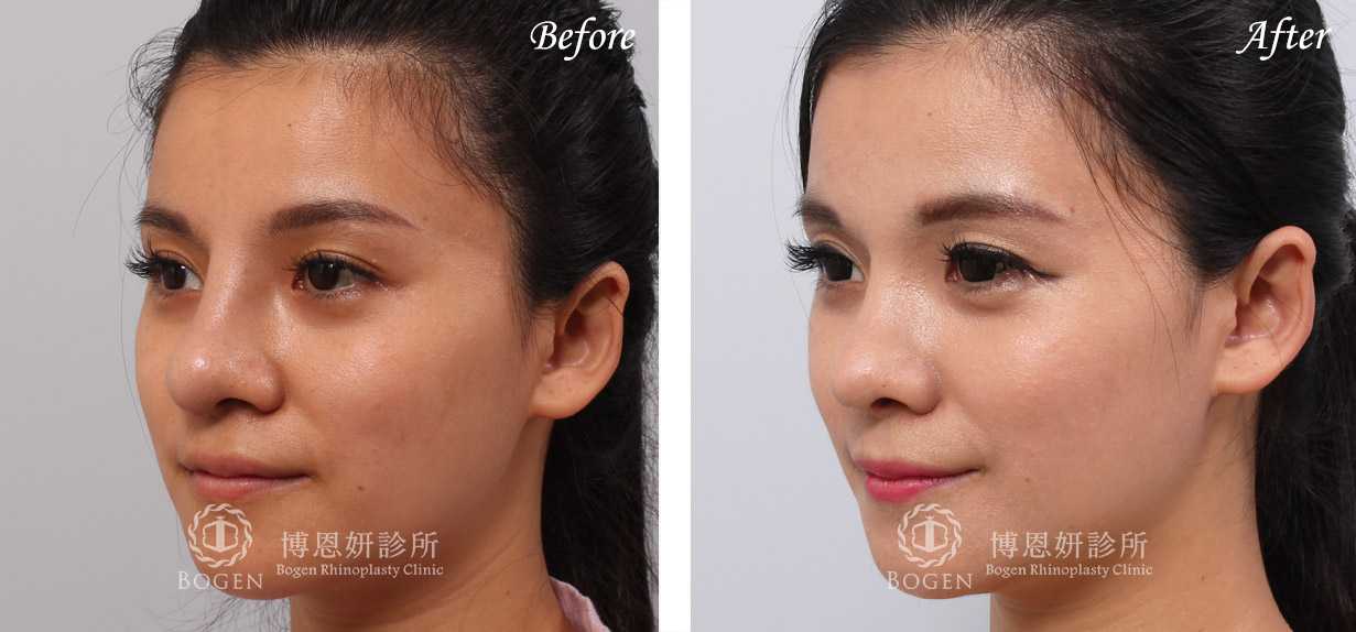 2. 駝峰移除,鼻樑寬度適中(因眼距略寬故不宜太細)