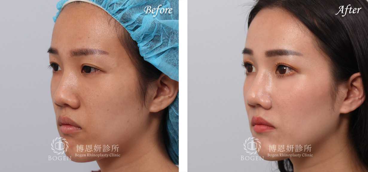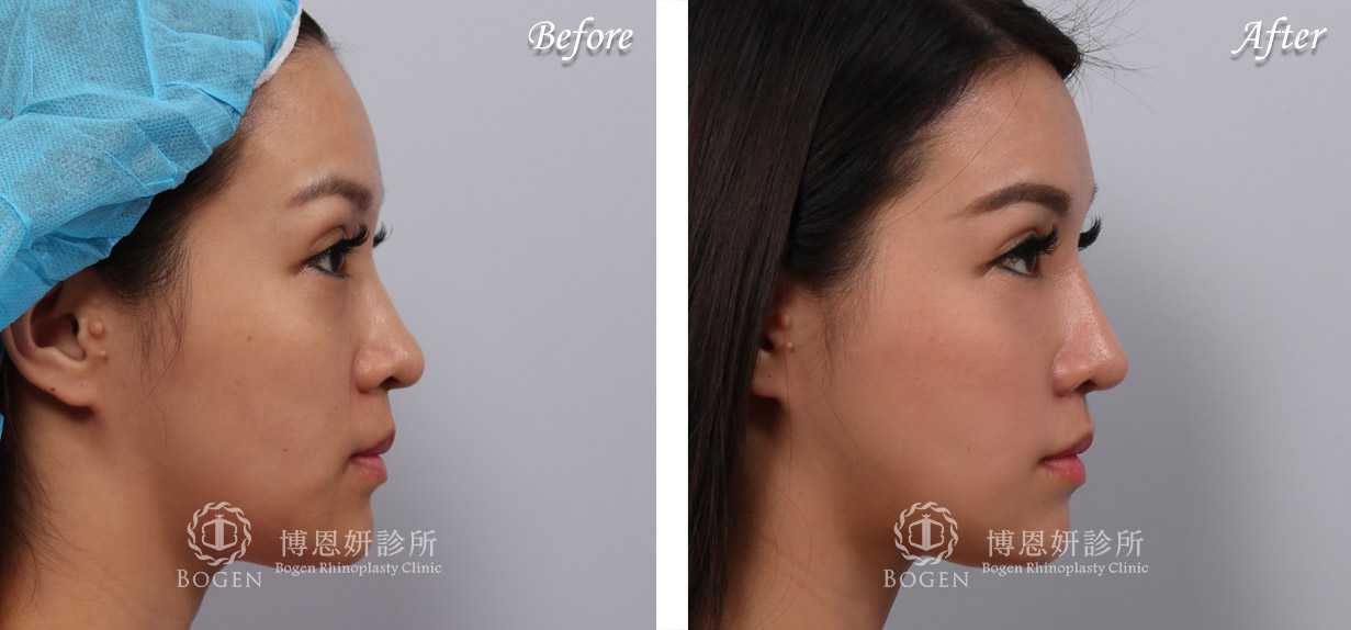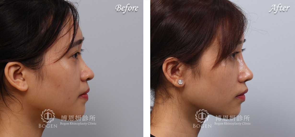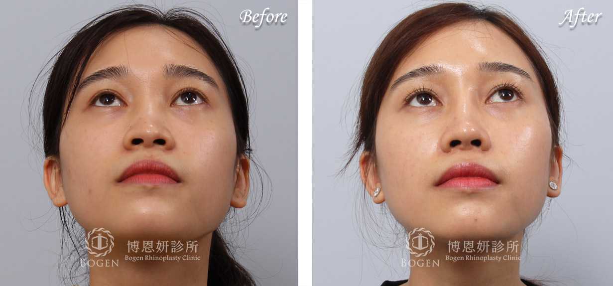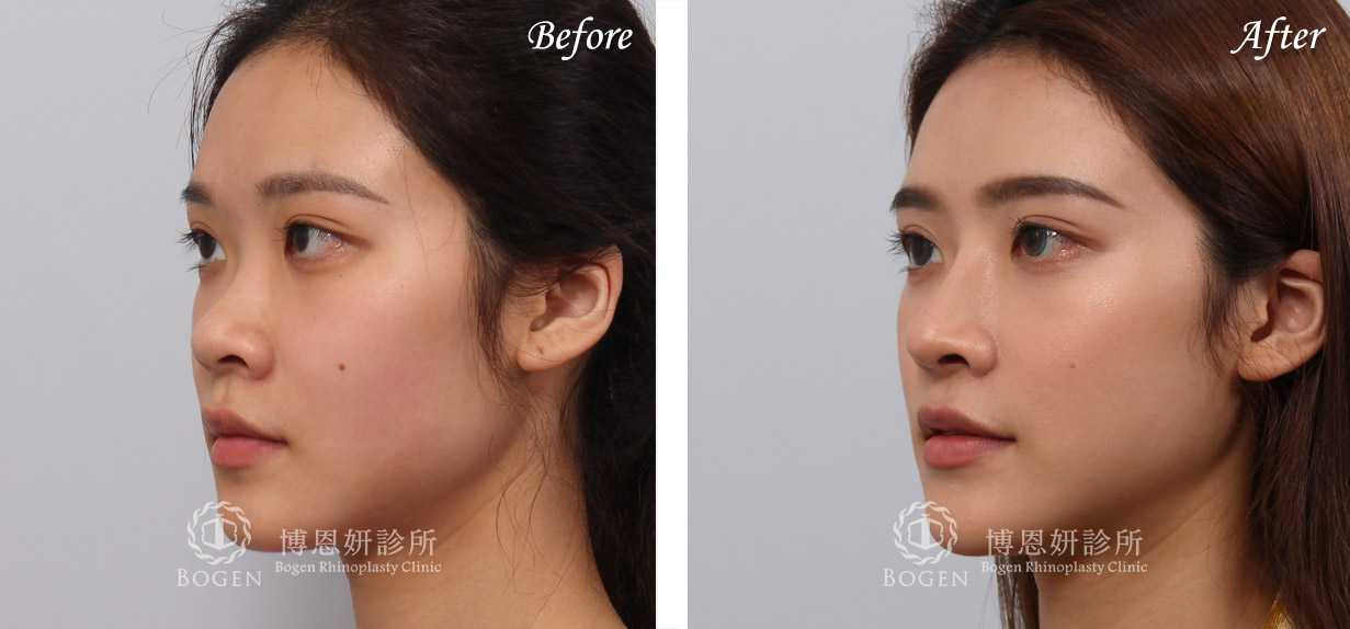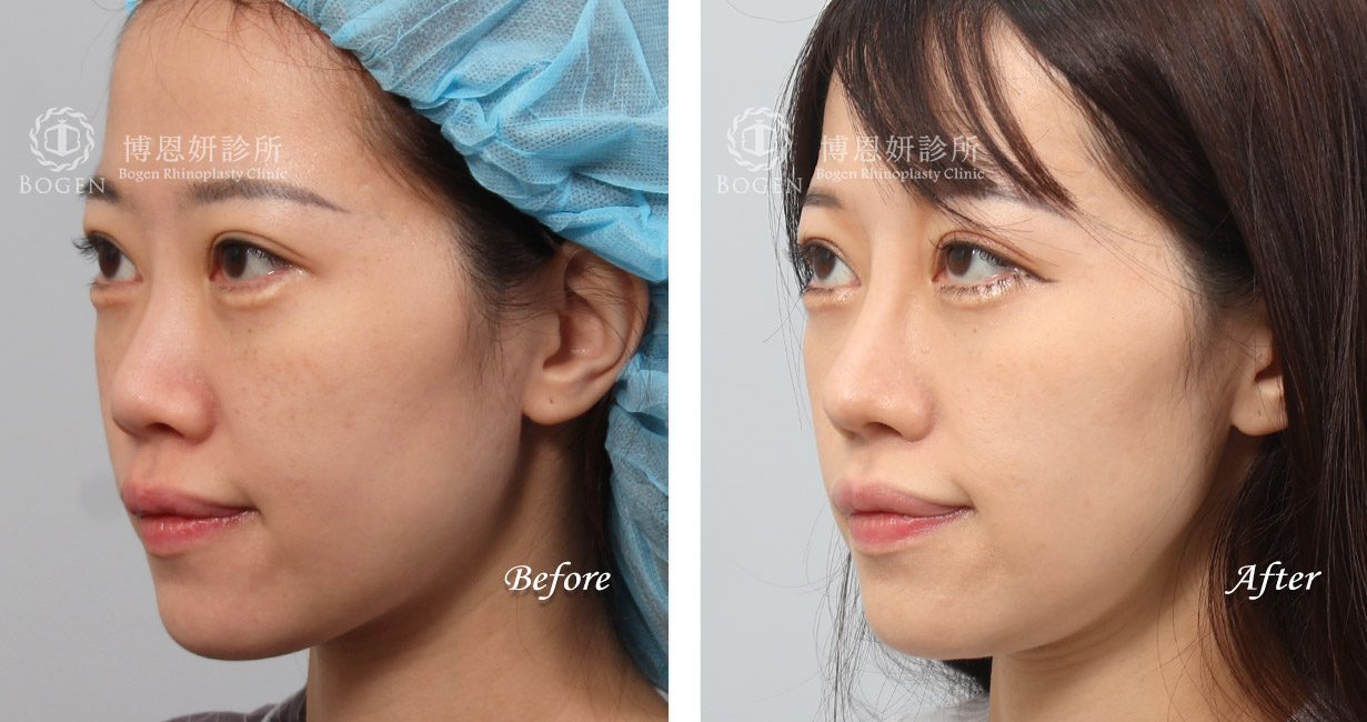 2. 駝峰移除,鼻樑寬度適中(因眼距略寬故不宜太細)