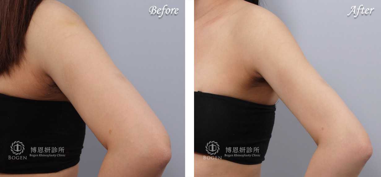 可以。女性的手臂脂肪多會連同副乳、後背一起肥厚,李岳樺醫生建議一併改善,讓手臂整體線條更為柔順。若夏天因為悶熱容易有狐臭困擾,也可以一併接受狐臭手術、抑或肩頸肌肉過於肥大可以使用肉毒瘦肩去修飾整體線條。