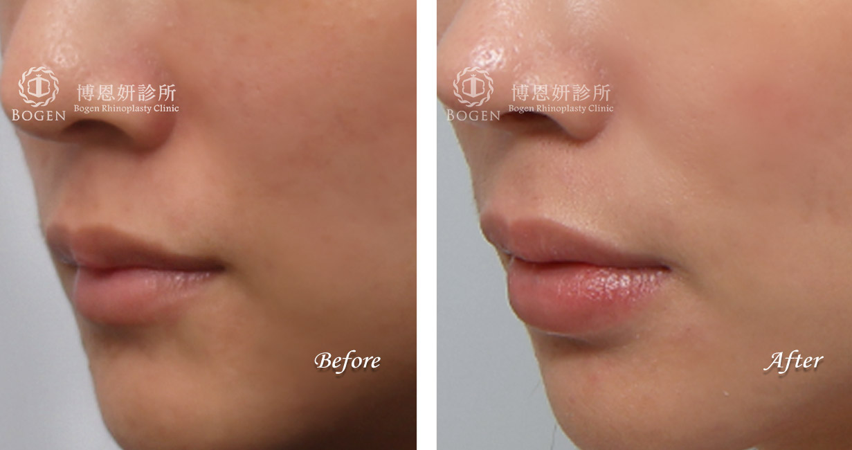 2. 上唇微笑線:略微增加一點厚度之後,上唇兩側微笑線會略微外翻,呈現自然微笑的效果。如果是切口在上唇下唇交界的唇角,一般擔心術後疤痕明顯問題,在上唇內的切口則疤痕較不明顯。