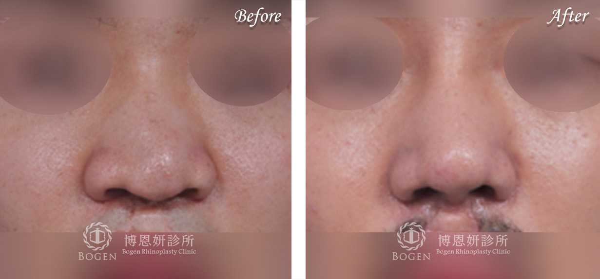 唇裂鼻手術使鼻頭延長,鼻樑撐高,兩側鼻孔高度調整
