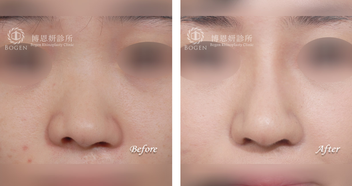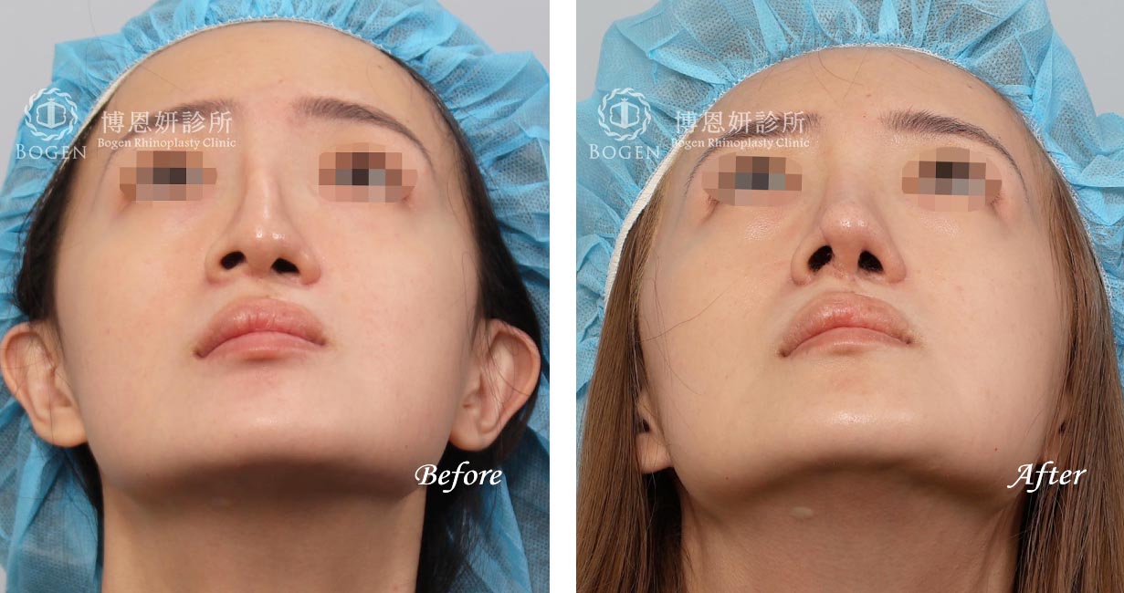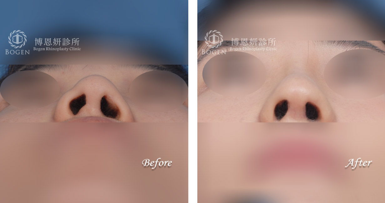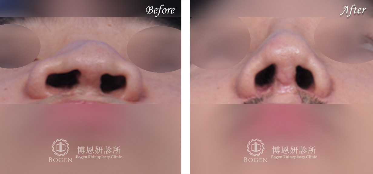 3. 鼻孔底不對稱調整:可藉由鼻翼手術來改善兩側鼻孔底高低的問題:但整體鼻孔對稱性無法做到完美,只能盡可能調整。