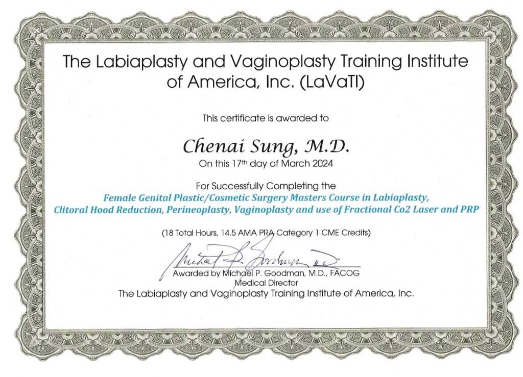 美國LaVaTI私密處美容手術進修認證醫師