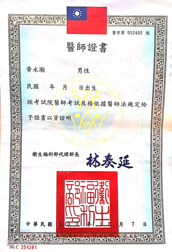 隆乳專業黃永瀚醫師,曾任職於亞東紀念醫院乳房外科,擁有中國大陸一年多的微整注射經驗,並曾任韓國醫美機構研究醫師,目前服務於台灣大型醫美連鎖機構,帥氣有為的外型背後已累積豐富的醫美臨床經驗!從醫美微整到近年鑽研假體隆乳及抽脂手術,皆獲得許多官方認證,將專業技術與美學結合,為求美者量身打造安全、自然且符合個人比例的隆乳與身型雕塑方案。